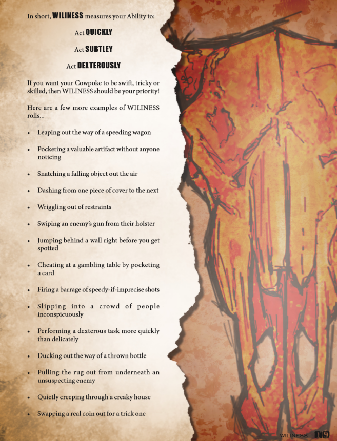 DEAD IN THE WEST feels like playing a particularly exciting old cowboy movie, with memorable heroes and frantic action set-pieces. Players will be constantly performing crazy stunts, using their unique skills to overcome obstacles, and keeping on their toes just in case the GM yells “”!