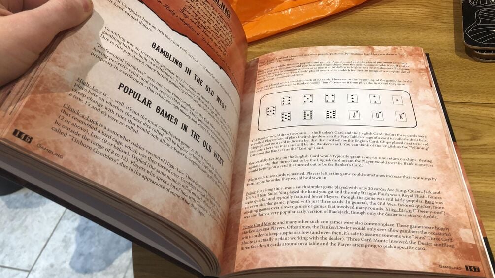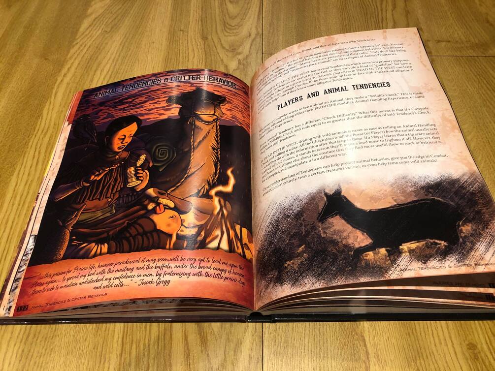 The 300-page, fresh-and-rosey physcial copy of the DEAD IN THE WEST game! Featuring full-colour pages, dozens of gorgeous pieces of hand-drawn artwork, a thick and durable spine, and all the rootin-toot's you'll need for one lifetime! This buffalo-of-a-book is large, sturdy, and makes for an excellent and eye-catching addition to any Roleplayer's shelf.